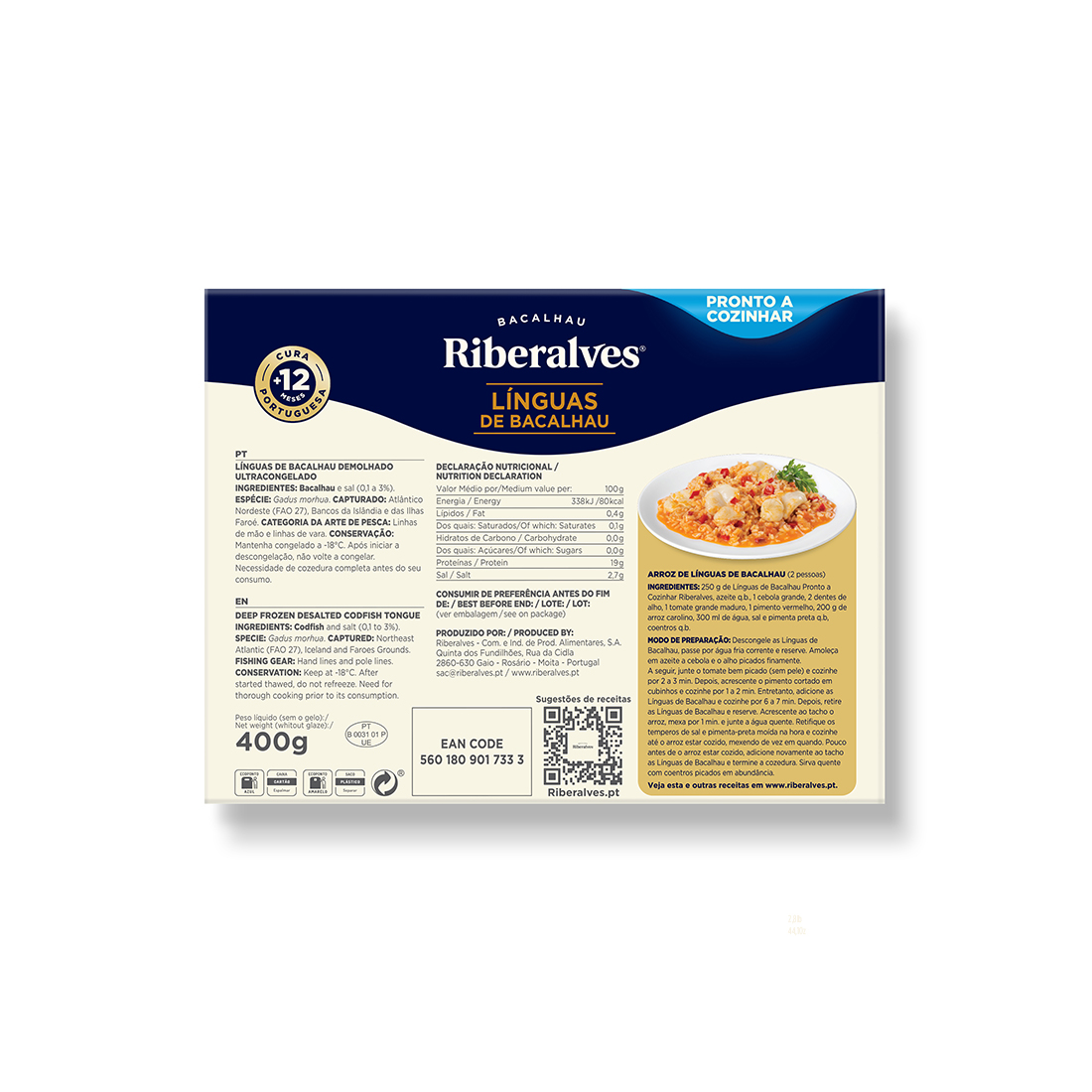 Línguas de Bacalhau +12meses iva incluído 11,49 €Línguas de Bacalhau +12meses iva incluído Adicionar Produtos Relacionados Posta do Lombo +9Meses iva incluído 13,49 € Quantidade de Posta do Lombo +9Meses iva incluído Adicionar Lombos de Bacalhau +9Meses iva incluído 22,19 € Quantidade de Lombos de Bacalhau +9Meses iva incluído Adicionar Empadão de Bacalhau iva incluído 4,79 € Quantidade de Empadão de Bacalhau iva incluído Adicionar Pataniscas de Bacalhau Gourmet iva incluído 5,69 € Quantidade de Pataniscas de Bacalhau Gourmet iva incluído Adicionar