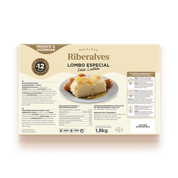 Apresentação: Em caixa com 1,8kg. O equivalente a 4 lombos, de 450g cada.